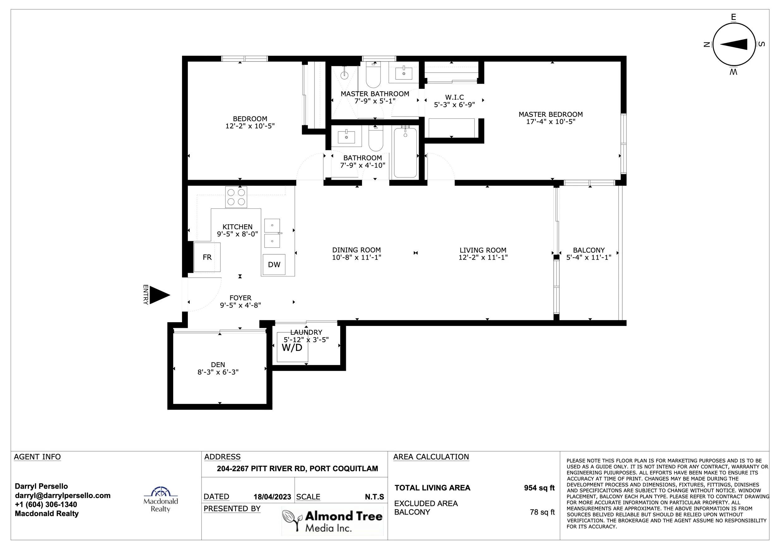 CONDO/ 2 BEDS + DEN/ 2 BATH / 954 SQFT