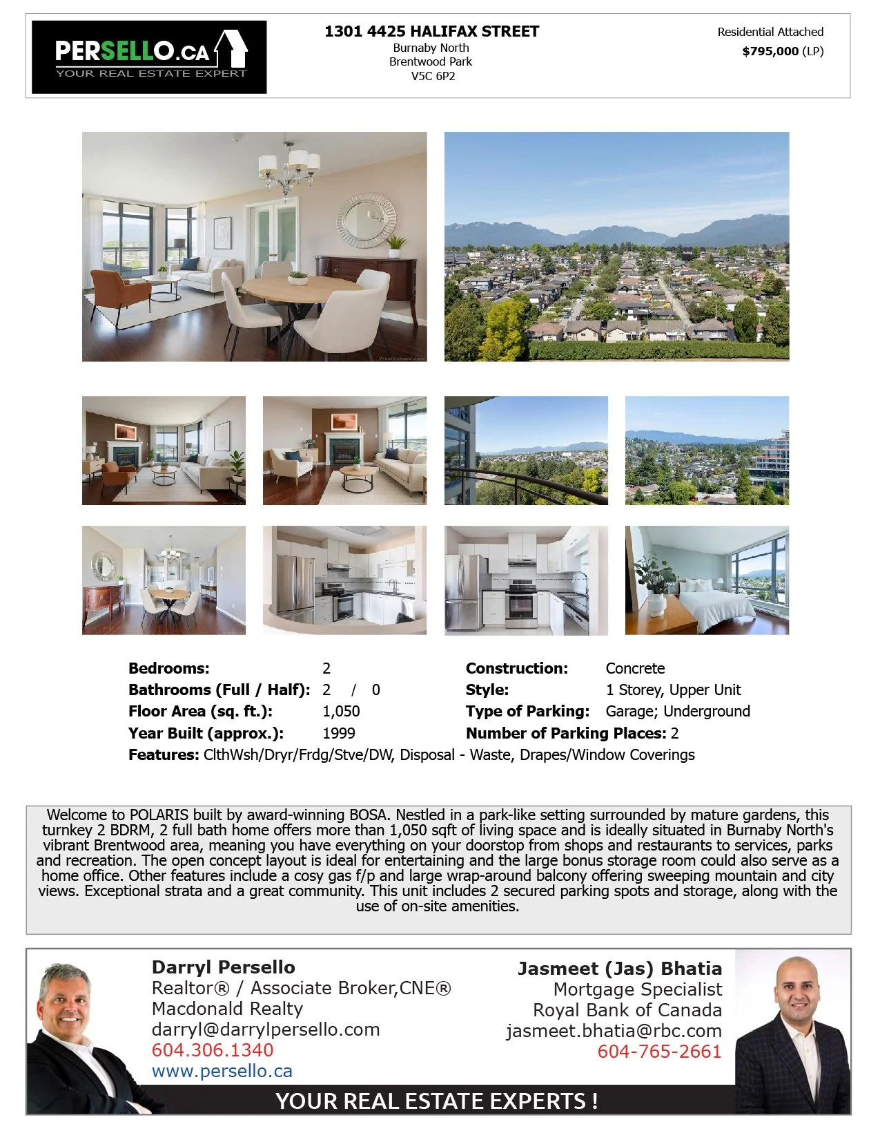 CONDO/ 2 BEDS + DEN & 2 BATHS/ 1276 SQFT + 138 SQFT OF BALCONIES
